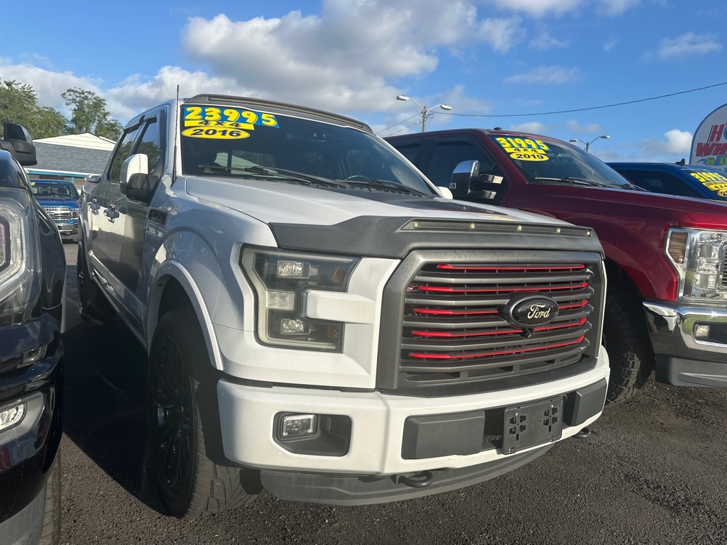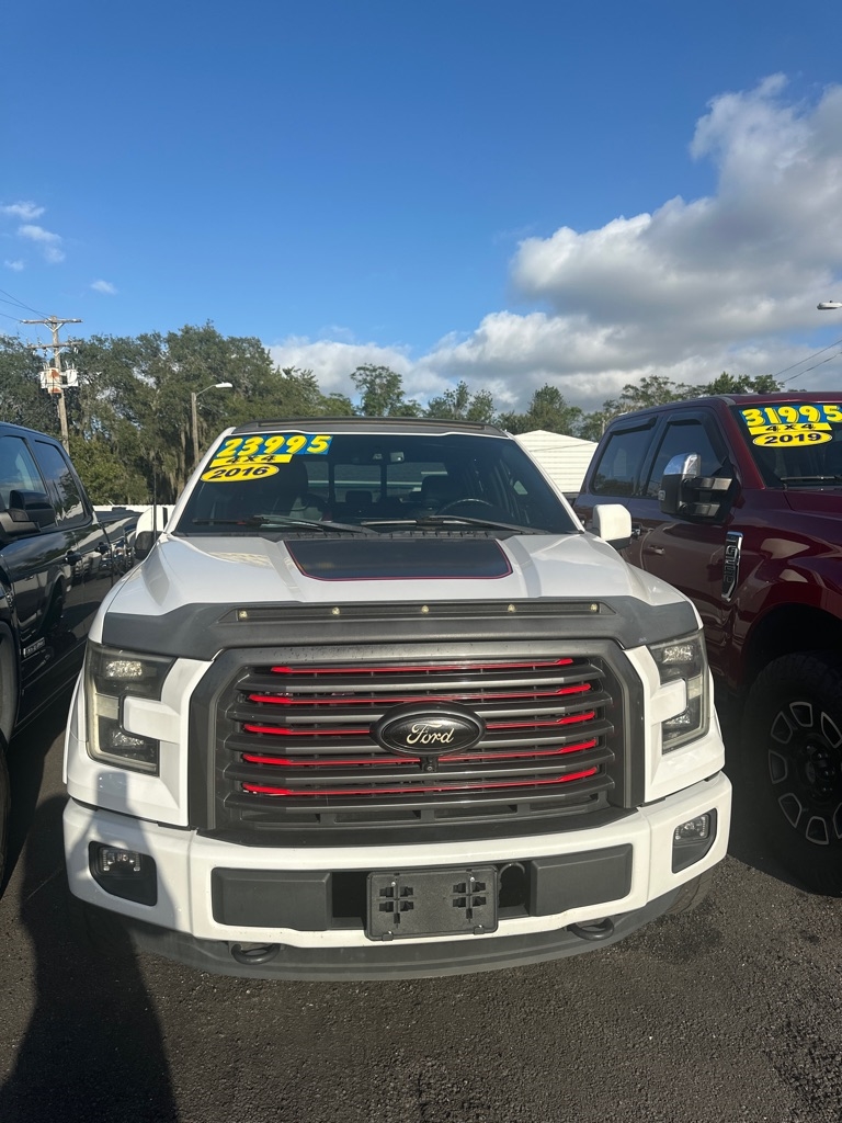 WE HAVE ALL TYPES OF FINANCING FOR ALL TYPES OF CREDIT! We Offer Exceptional and Rare, High Quality Vehicles with Cash Special Internet Pricing!! How do we do it? With our Experienced Buying Team and our Low Overhead, No Haggle, No Gimmicks, No Runaround BS. We provide a Quick, Stress -Free Buying Experience. It's Simple, You See, You Like, You Buy, You're Welcome!! We also offer a free 30 day or 1000 mile limited power train warranty. See dealer for details. Experience strength, style, and smart technology in this 2016 Ford F-150 Lariat 4x4 SuperCrew, powered by a commanding 5.0L V8 engine and a smooth six-speed automatic transmission. Dressed in a crisp white exterior with a striking black and red Lariat Special Edition interior, this truck stands out with its factory upgrades including running boards, twin-panel moonroof, sunroof package, adaptive cruise control, voice-activated navigation, and Blind Spot Monitoring. Built for both power and precision, it features a Trailer Tow Package with integrated trailer brake control, Active Park Assist, and the Lariat Sport Package, all wrapped into the advanced Technology Package. Awarded 5-Star safety ratings, this truck delivers top-tier protection while providing luxurious comfort and rugged capability-a premium blend of confidence and class, wherever the road takes you.