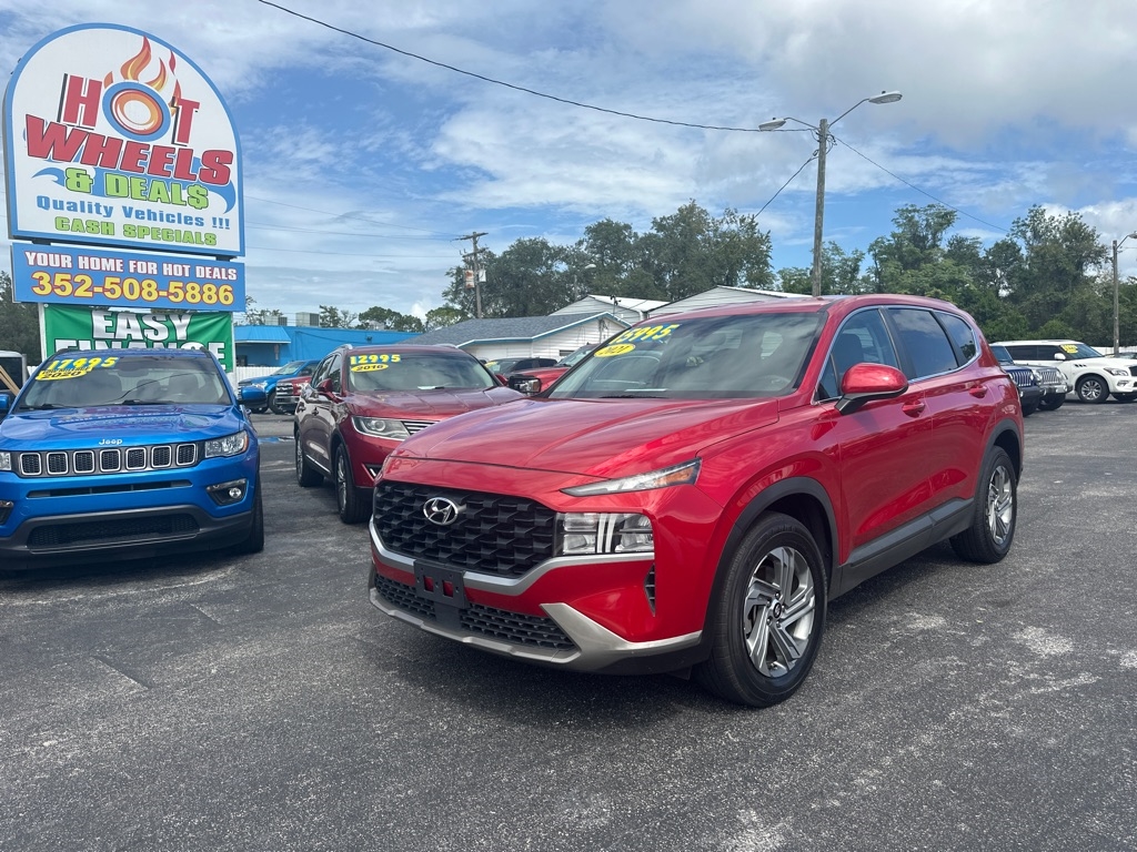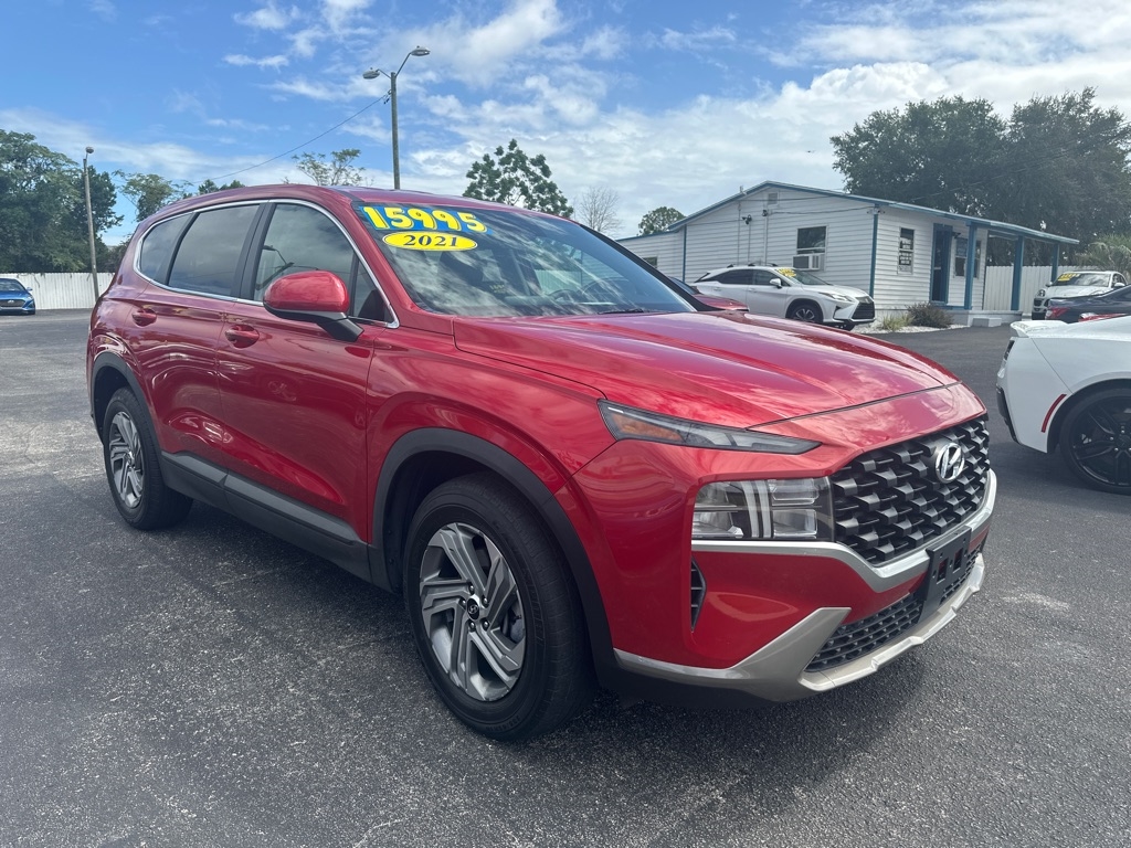 WE HAVE ALL TYPES OF FINANCING FOR ALL TYPES OF CREDIT! We Offer Exceptional and Rare, High Quality Vehicles with Cash Special Internet Pricing!! How do we do it? With our Experienced Buying Team and our Low Overhead, No Haggle, No Gimmicks, No Runaround BS. We provide a Quick, Stress -Free Buying Experience. It's Simple, You See, You Like, You Buy, You're Welcome!! We also offer a free 30 day or 1000 mile limited power train warranty on a 50/50 basis. See dealer for details. Turn heads in this stunning Calypso Red 2021 Hyundai Santa Fe, a midsize SUV that blends style, safety, and efficiency. With its sleek black interior and bold exterior, this Santa Fe offers excellent gas mileage for everyday driving and long road trips alike. Rated 5 Stars for safety, it's built to protect what matters most, while modern features like Bluetooth connectivity and a crystal-clear backup camera make every drive smarter and more convenient. Whether you're commuting or adventuring, this Santa Fe delivers confidence, comfort, and curb appeal in one impressive package.