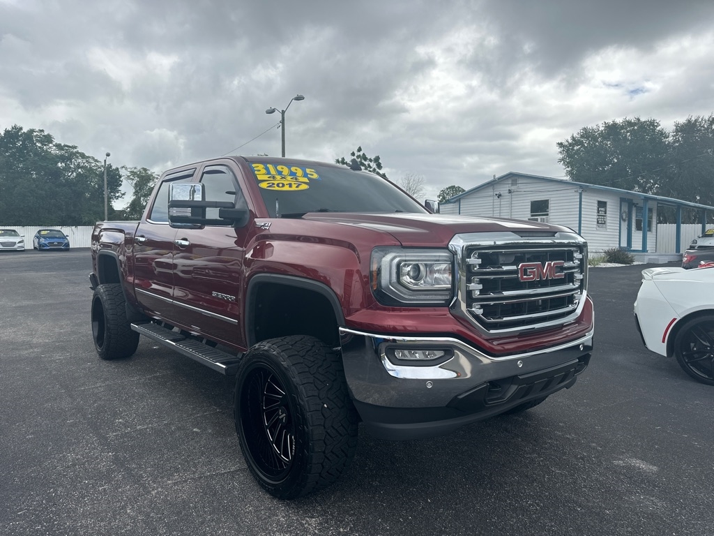 WE HAVE ALL TYPES OF FINANCING FOR ALL TYPES OF CREDIT! We Offer Exceptional and Rare, High Quality Vehicles with Cash Special Internet Pricing!! How do we do it? With our Experienced Buying Team and our Low Overhead, No Haggle, No Gimmicks, No Runaround BS. We provide a Quick, Stress -Free Buying Experience. It's Simple, You See, You Like, You Buy, You're Welcome!! We also offer a free 30 day or 1000 mile limited power train warranty. See dealer for details. Turn heads and tackle any terrain in this bold 2017 GMC Sierra 1500 SLT 4x4, lifted and loaded for performance and style. Outfitted with Fox performance struts and the Z71 off-road package, it's built to dominate both highway and trail. The luxurious leather interior is accented with rich woodgrain trim and a premium Bose audio system, while the backup camera adds confidence to every maneuver. Chrome accents and striking aftermarket wheels elevate its curb appeal, making this Sierra as refined as it is rugged. Whether you're chasing adventure or making a statement, this truck delivers.