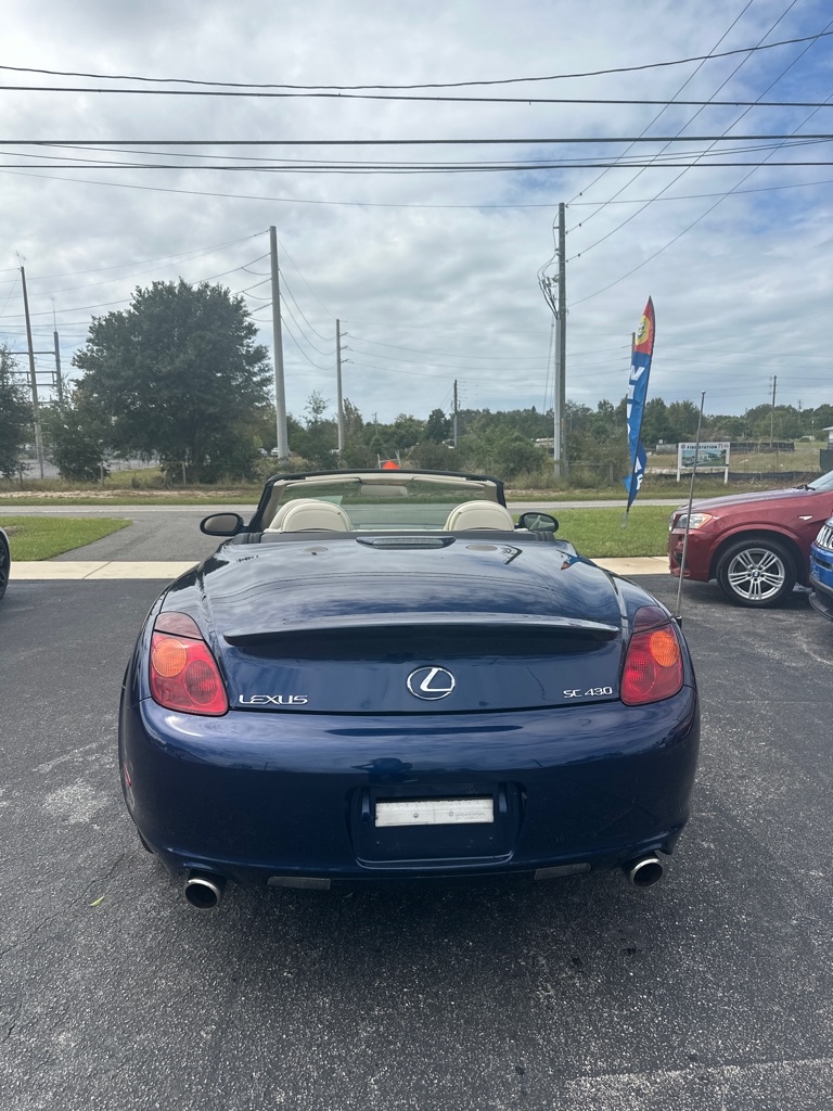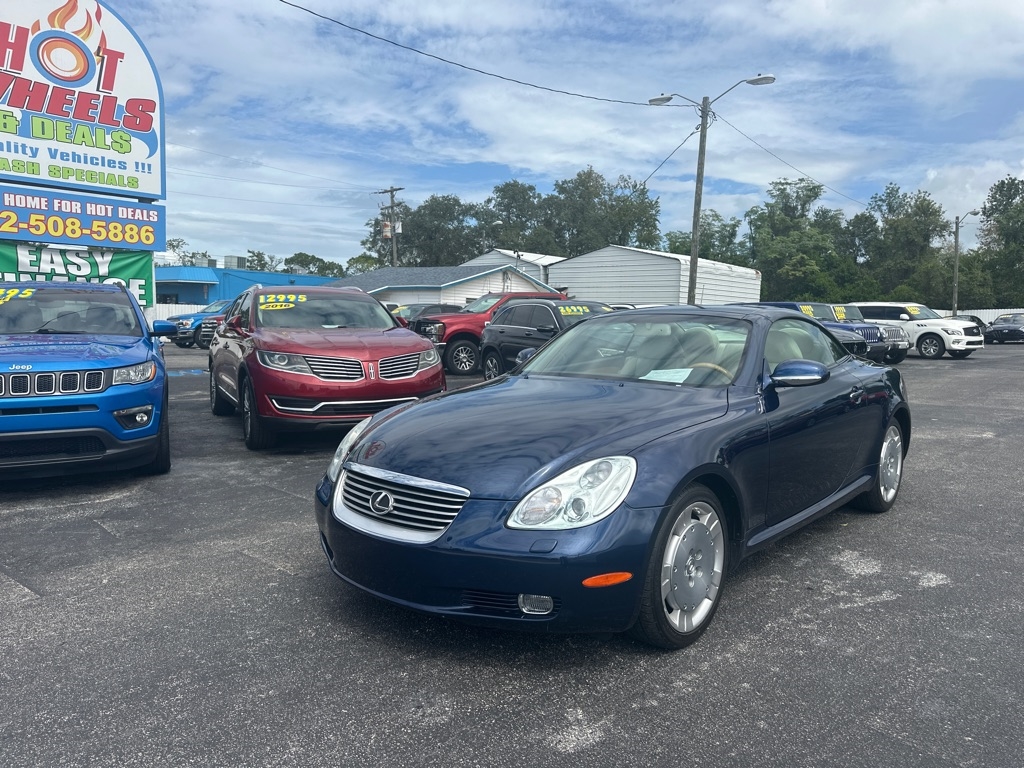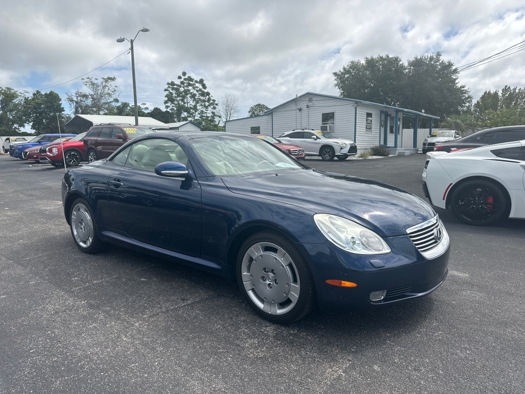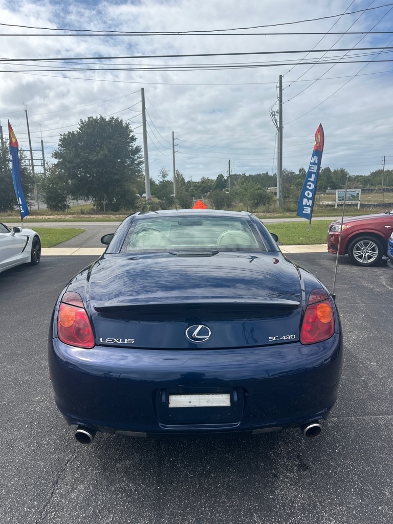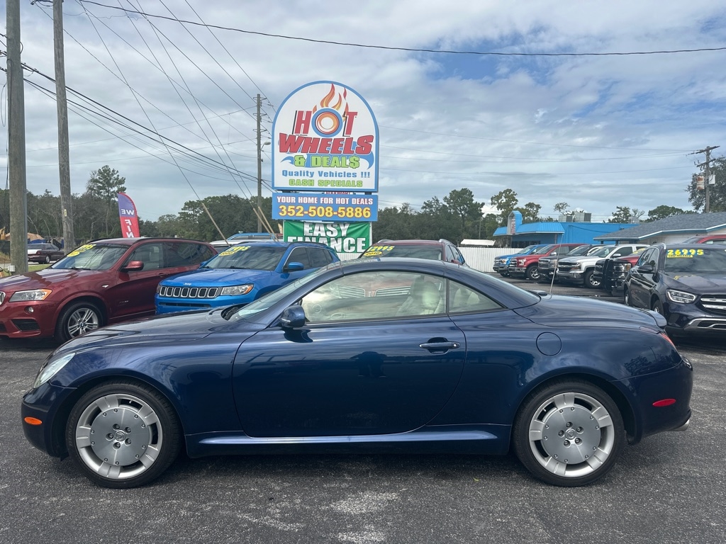 WE HAVE ALL TYPES OF FINANCING FOR ALL TYPES OF CREDIT! We Offer Exceptional and Rare, High Quality Vehicles with Cash Special Internet Pricing!! How do we do it? With our Experienced Buying Team and our Low Overhead, No Haggle, No Gimmicks, No Runaround BS. We provide a Quick, Stress -Free Buying Experience. It's Simple, You See, You Like, You Buy, You're Welcome!! We also offer a free 30 day or 1000 mile limited power train warranty on a 50/50 basis. See dealer for details. Turn heads in this timeless 2002 Lexus SC 430 hardtop convertible-an impeccably maintained classic that blends luxury, performance, and style. Powered by a robust 4.3L V8 engine paired with a smooth five-speed automatic transmission, it delivers impressive fuel efficiency without sacrificing power. The elegant interior features rich leather and wood trim, a power tilt-telescopic steering column, 10 way power front seats and factory upgraded-rear spolier. With its sleek retractable hardtop this SC 430 is as striking as it is refined-a rare find for those who appreciate craftsmanship and enduring design.