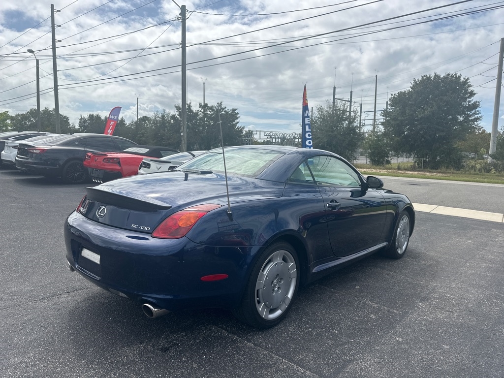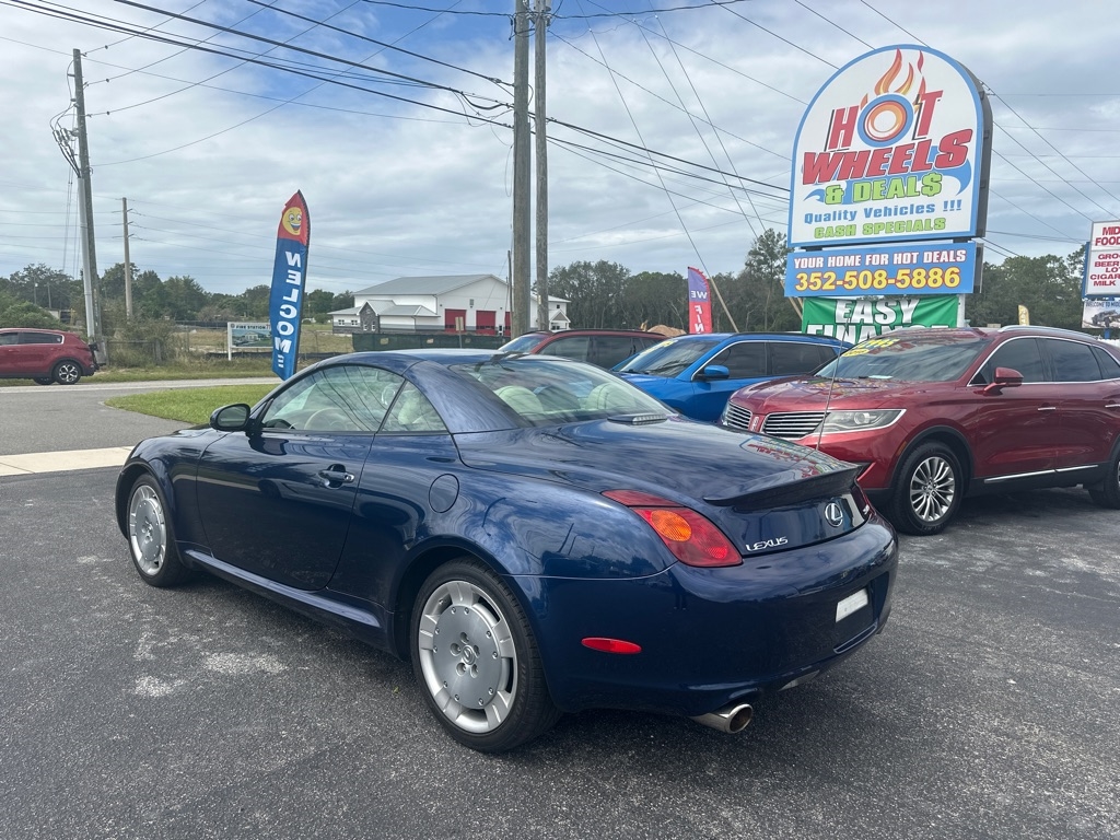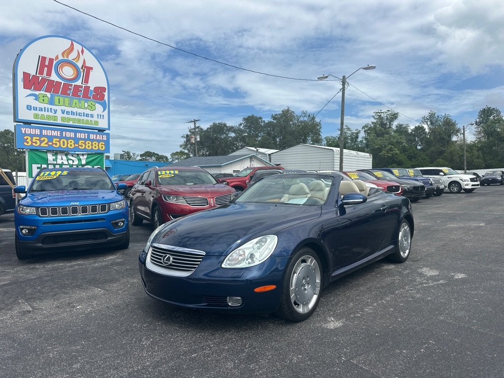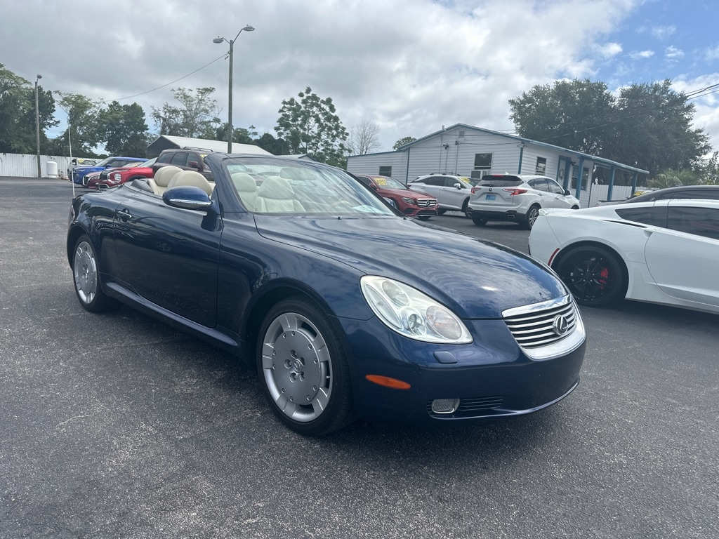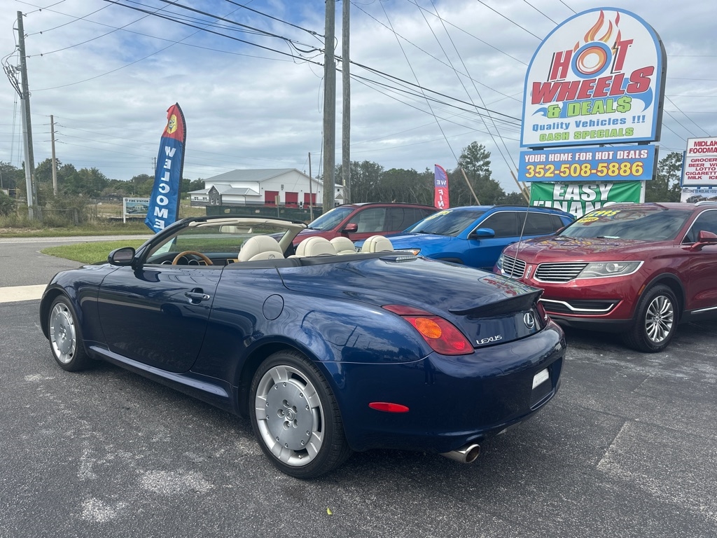 WE HAVE ALL TYPES OF FINANCING FOR ALL TYPES OF CREDIT! We Offer Exceptional and Rare, High Quality Vehicles with Cash Special Internet Pricing!! How do we do it? With our Experienced Buying Team and our Low Overhead, No Haggle, No Gimmicks, No Runaround BS. We provide a Quick, Stress -Free Buying Experience. It's Simple, You See, You Like, You Buy, You're Welcome!! We also offer a free 30 day or 1000 mile limited power train warranty on a 50/50 basis. See dealer for details. Turn heads in this timeless 2002 Lexus SC 430 hardtop convertible-an impeccably maintained classic that blends luxury, performance, and style. Powered by a robust 4.3L V8 engine paired with a smooth five-speed automatic transmission, it delivers impressive fuel efficiency without sacrificing power. The elegant interior features rich leather and wood trim, a power tilt-telescopic steering column, 10 way power front seats and factory upgraded-rear spolier. With its sleek retractable hardtop this SC 430 is as striking as it is refined-a rare find for those who appreciate craftsmanship and enduring design.